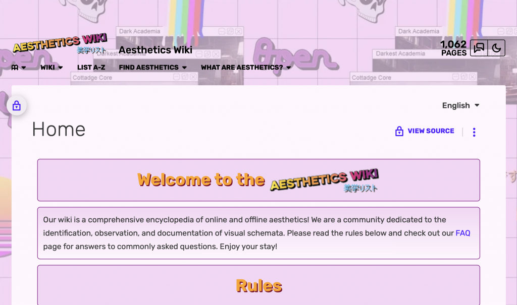 The Aesthetics Wiki is a ‘comprehensive encyclopaedia of online and offline aesthetics’. It is a great starting point for research and also serves as a good well for history and visual inspiration.