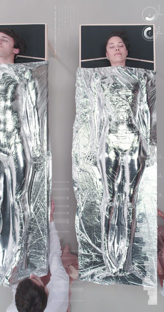 Lucy McRae, a body architect and artist created the Future spa day as a scientific and immersive wellness experience that reimagines the relationship between human bodies and technology. The installation uses controlled vacuum pressure to create the sensation of a full body “hug” including deep relaxation through what she describes as a “part of human, part of mechanism” therapeutic session. Unlike traditional spa treatments, the future spa day integrates biometric technology to map physiological responses in real time, tracking how the body reacts to pressure and environment. Developed in collaboration with tech professionals like Qualcomm, the project explores how technology can prepare human bodies for extreme future environments, including space travel.