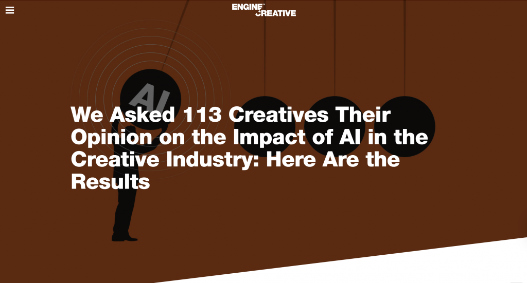 The article from Engine Creative discusses how artificial intelligence is affecting the creative industry, based on a survey of over 100 creative professionals. It explains that AI is becoming more widely used and is mainly seen as a tool to support and improve creative work rather than replace it.